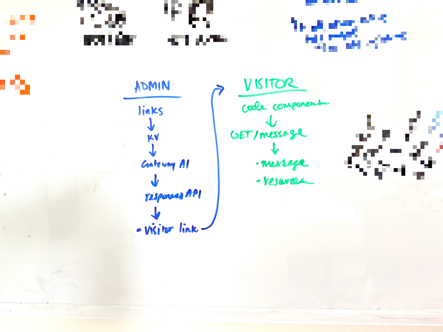 There’s a litany of validation that ensues on the client and backend, from deduping links to URL normalization/canonicalization. We then generate a 3 or 4 character slug (36^3 + 36^4 = 1,726,272 combinations), first checking it does not exist, and then storing the visitor links used with the slug in Cloudflare Workers KV. Next, we generate the personalized message and link order (priority) via Cloudflare AI Gateway and using the Responses API from OpenAI. Thanks to environment bindings stringing these services together is a breeze. Not a light breeze either, a really gusty one on a hot day.